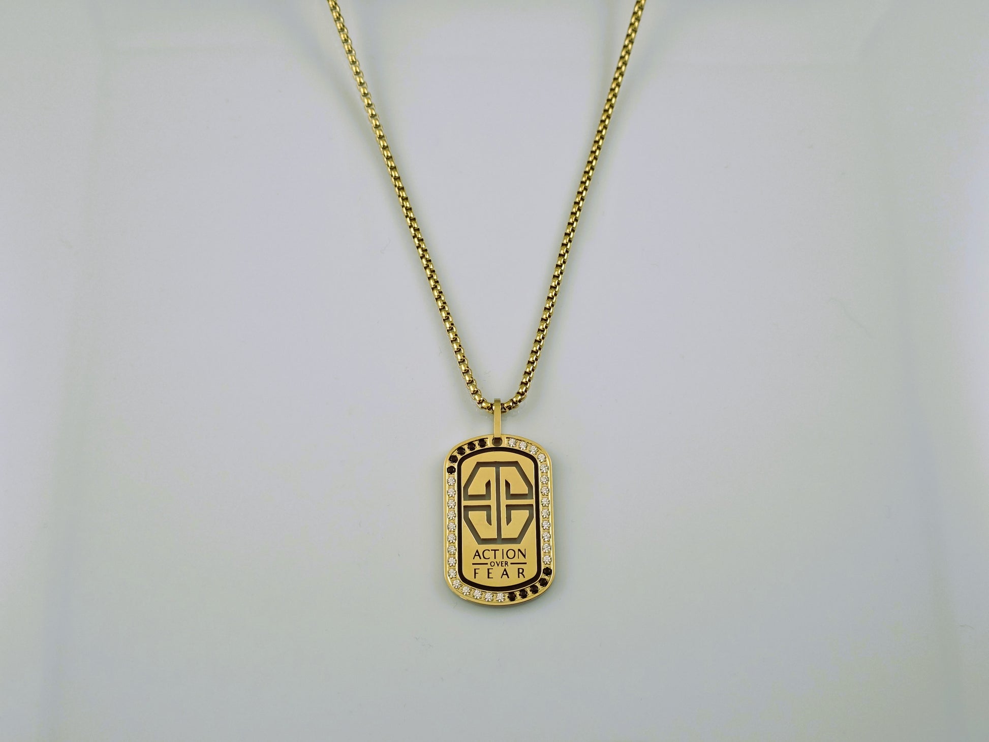 "Success begins with a vision; greatness begins with the courage to wear it." Elegant in its simplicity and profound in its purpose, the Beinire Vision tag is more than jewelry - it’s a statement of intent. Featuring a premium box chain necklace paired with the iconic Beinire Symbol nestled in an exquisite tag adorned with a combination of onyx black and ice clear crystals. This piece is meticulously crafted in sleek stainless steel or radiant 18K gold plating.